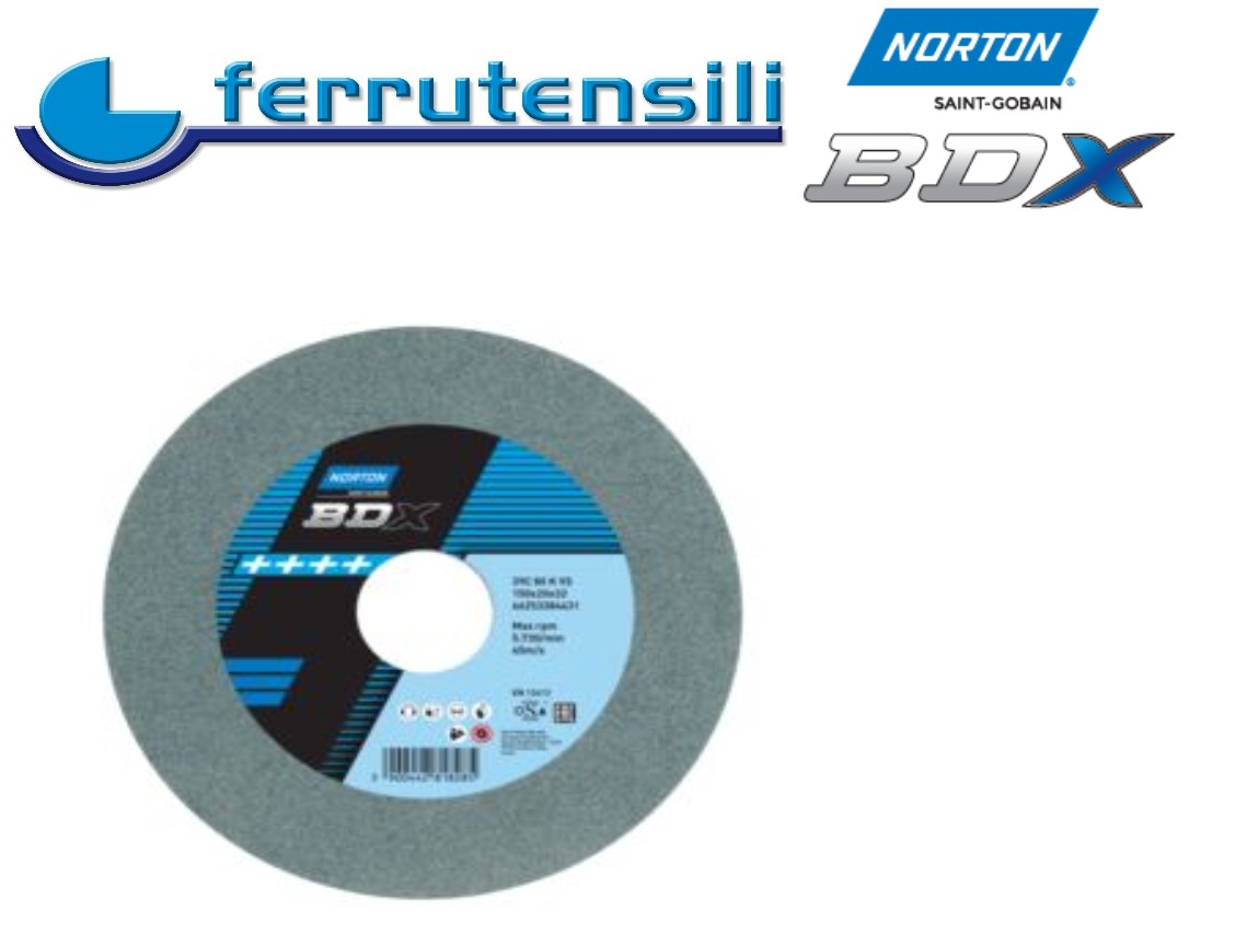 Mola abrasiva NORTON BDX *** vetrificata per molatrice fissa Specifica Tipo 39C Abrasivo in carburo di silicio verde estremamente puro • La grana convenzionale più friabile. Più duro e tagliente dell’ossido di alluminio • Per tutte le applicazioni generiche da banco su materiali non ferrosi e utensili in carburo • Ideale per applicazioni di rettifica di precisione e affilatura • Ottima capacità di taglio e finitura su carburi metallici e materiali non ferrosi duri o sensibili al calore Le mole con foro diametro mm. 32 comprendono riduzione in plastica mm. 32-20 Le bussole per riduzione fori in plastica possono essere impiegate per adattare il foro della mola a diverse dimensioni del mandrino. Queste bussole riducono il diametro del foro permettendo di montare la mola su un mandrino dal diametro inferiore in modo completamente sicuro. Possono essere costruite bussole di riduzione in ottone tenendo presenti le seguenti raccomandazioni: • Le bussole di riduzione non devono mai essere a contatto con le flange • Le bussole di riduzione non vanno mai montate su mole con spessore inferiore a 6mm, né maggiore di 50mm • Utilizzare sempre una bussola per ogni lato quando lo spessore della mola è sufficiente da permetterne il corretto posizionamento • Non utilizzare mai le bussole per ridurre il foro della mola al di sotto del minimo indicato dal codice di sicurezza FEPA Diametro mola mm. 150 minimo foro mm. 16 Diametro mola mm. 200 minimo foro mm. 20 Diametro mola mm. 250 minimo foro mm. 25 Diametro mola mm. 300 minimo foro mm. 32 Verificare la disponibilità di magazzino attraverso il pulsante Verifica Disponibilità Se il prodotto è disponibile la spedizione avverrà in un giorno lavorativo dalla data dell'ordine e del pagamento. In caso di prodotto con disponibilità 0 la spedizione potrà avvenire in 7/10 gg. lavorativi data ordine pagamento