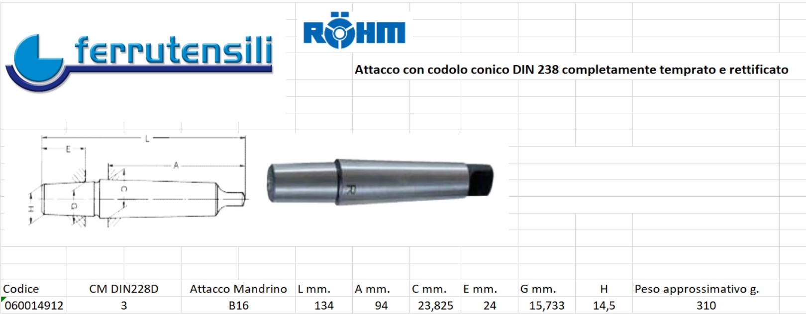 ATTACCO MANDRINO CM3 B16 DIN 238