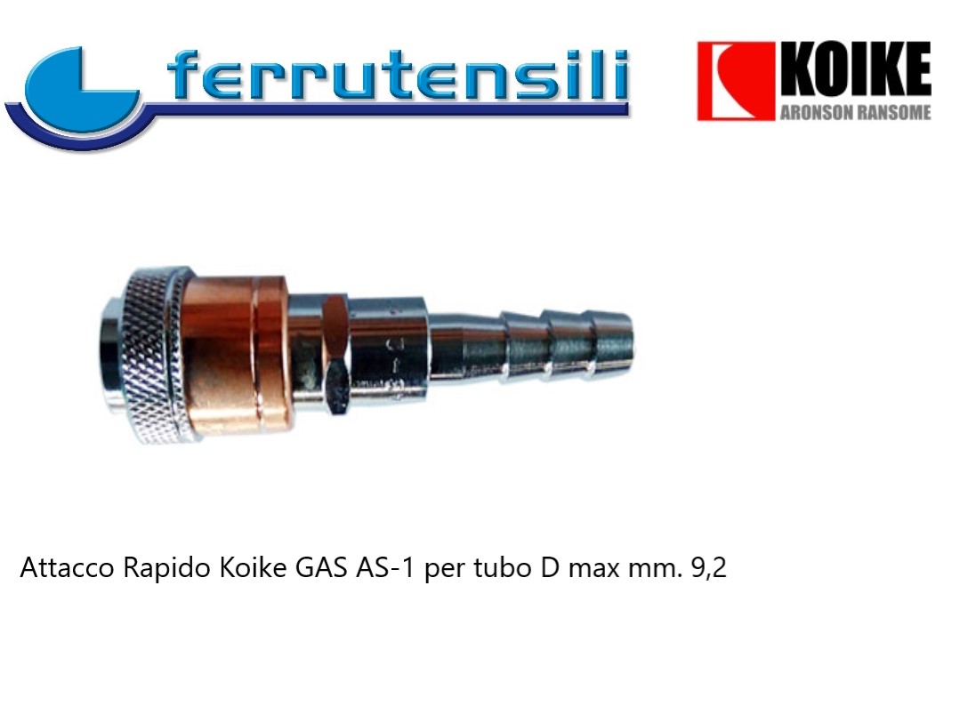 Attacco Rapido Koike AS-2S codice Koike CG2981 Rubinetto Tubo a Tubo Tubo Cannello Installazione Tubo Diametro max tubo mm. 9,2 Tipo di Gas Gas Combustibile