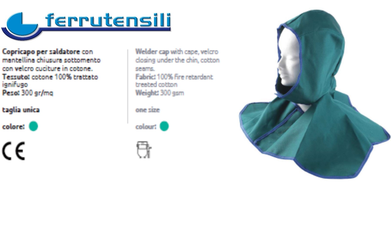 Copricapo per Saldatore con mantellina chiusura sottomento con velcro. Cuciture in cotone Tessuto: Cotone 100% Trattati Ignifugo Peso 300gr/mq Taglia UNICA Colore Verde Scuro Verificare la Disponibilità tramite apposita funzione Verifica Disponibilità In caso di disponibilità 0 per questo articolo la spedizione è prevista in 5/6 gg. lavorativi salvo imprevisti