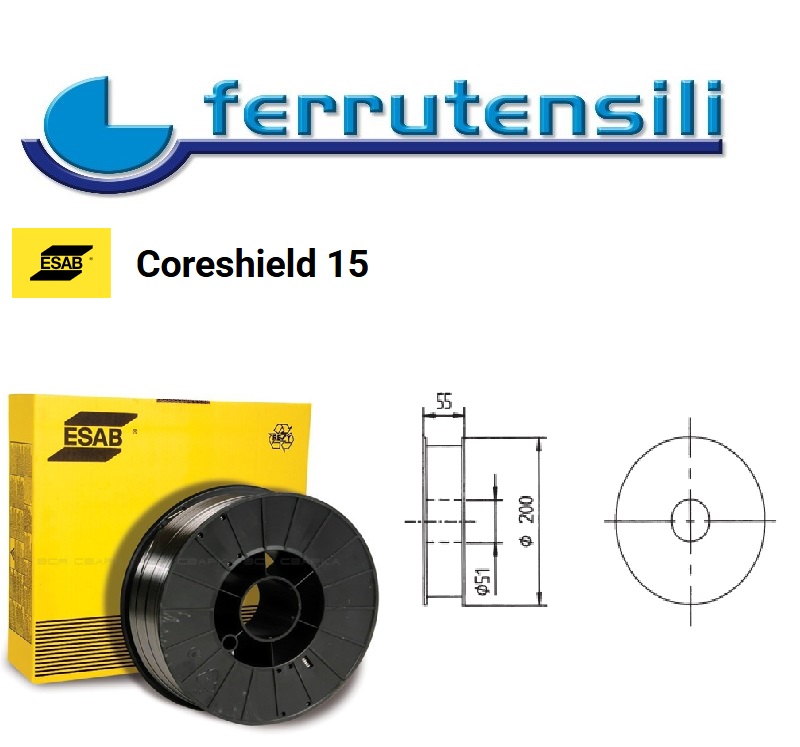 FILO PER SALDATURA ESAB AUTOPROTETTO NO GAS Bobina da Kg. 4,5 D200 diametro mm. 200 Coreshield 15 diametro filo mm. 0,8 Utilizzabile in tutte le posizioni, per applicazioni a passata singola. Coreshield 15 produce un arco fluido, una copertura completa delle scorie, una facile rimozione delle scorie e pochi spruzzi. L'utilizzo di corrente DC EN (elettrodo negativo) riduce al minimo il rischio di bruciature. Coreshield 15 è eccellente per saldature a sovrapposizione e a cordone d'angolo su acciai zincati e al carbonio di piccolo spessore in tutte le posizioni di saldatura. Utilizzabile su macchine MIG Saldatrici a Filo con possibilità di inversione di polarita in acciai zincati, zinco-alluminio-carbonio o acciai al carbonio alluminizzati. Nelle costruzioni strutturali, il prodotto può essere utilizzato dove non sono presenti requisiti antisismici. Verificare la Disponibilità tramite apposita funzione Verifica Disponibilità Prodotti disponibili in magazzino spedizione in 1 giorno lavorativo max dalla data ordine In caso di disponibilità 0 per questo articolo la spedizione è prevista in 6/7 gg. lavorativi salvo imprevisti
