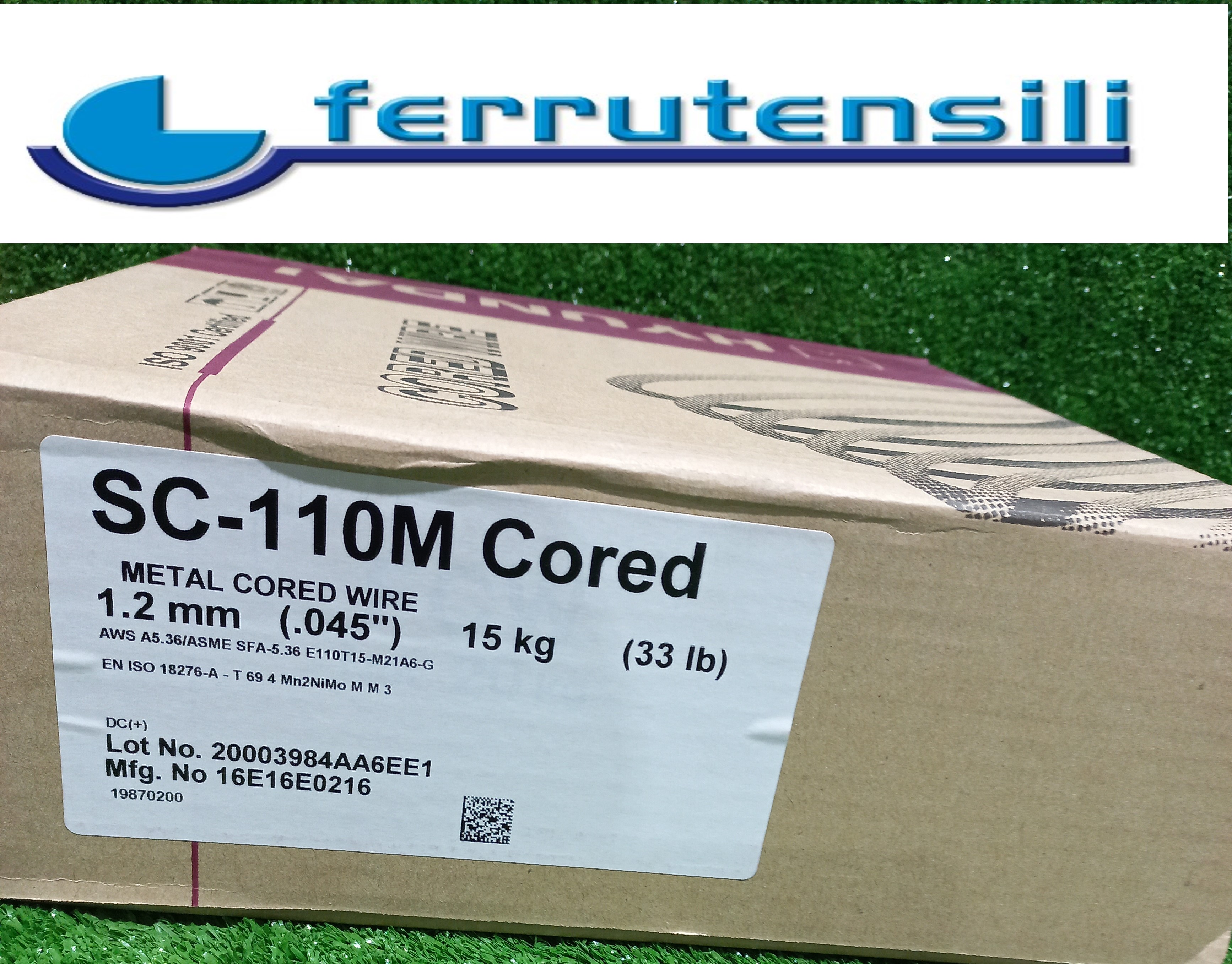 HYUNDAI SC-110M Cored Filo Animato Metal Cored Diametro mm. 1,2 Bobina da Kg. 15 Applicazioni SW-110M Cored è progettato per la saldatura di acciai ad alta resistenza in classe 760 MPa Caratteristiche sull'uso Saldatura singola e multipass di acciai bassolegati ad alta resistenza Come HY-80 e HY-100 SC-110M è un filo animato in metallo che fornisce un'eccezionale arco liscio e stabile, spruzzi ridotti Specifiche: AWS A5.28 E110C-G EN ISO 18276-A T69 4 Mn2NiMo M M 3 H5 Certificato 3.1 a richiesta