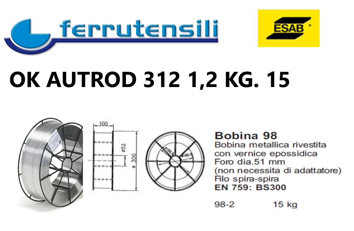OK Autrod 310 Filo di acciaio inossidabile, analisi tipica 29%Cr-9%Ni. Si utilizza nella saldatura MIG di acciai aventi simile composizione chimica ma anche per l unione di acciai dissimili e l’unione di acciai di difficile saldabilità. L’elevato contenuto di cromo consente di mantenere una buona resistenza all’ossidazione anche ad elevate temperature. Classificazioni: EN ISO 14343-A : G 29 9 SFA/AWS A5.9 : ER312 Approvazioni: CE EN 13479 Bobina da Kg. 15 in filo metallico rivestita con vernice epossidica NON NECESSITA DI ADATTATORE Filo Spira-Spira A richiesta certificato 3.1
