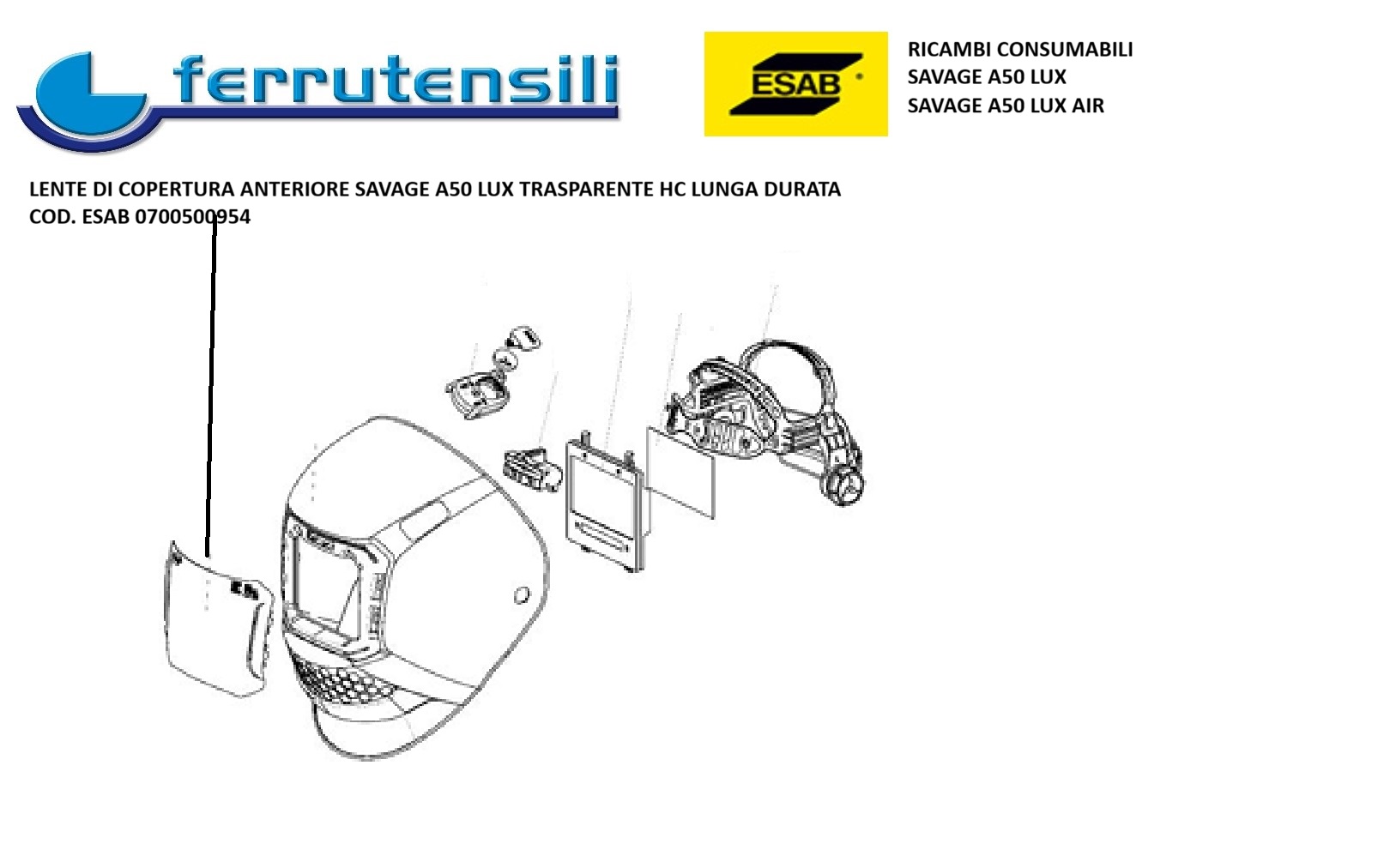 Lente di copertura anteriore di Savage A50 LUX -Trasparente Tipo HC Lunga Durata Codice Esab 0700500954 Verificate la disponibilità con la funzione Verifica Disponibilità