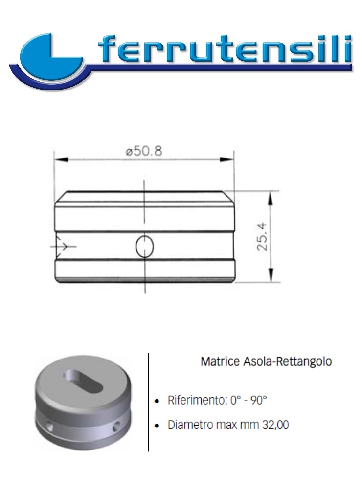 Matrice per Punzonatrice Ficep H2 Serie 801 ASOLA Riferimento 0-90 Diagonale massima mm. 32 Gioco Standard mm. 1 Gioco consigliato acciaio Spessori da 2÷4 mm. Gioco mm. 0,5 Spessori da 4÷8 mm. Gioco mm. 1 Spessori da 8÷12 mm. Gioco mm. 1,5 Spessori da 12÷15 mm. Gioco mm. 2 Le misure delle matrici comprendono il gioco Verificare la Disponibilità tramite apposita funzione Verifica Disponibilità Per le misure NON INDICATE O MANCANTI DI QUOTAZIONE chiedere offerta e termine di consegna Prodotti disponibili in magazzino spedizione in 1 giorno lavorativo max dalla data ordine In caso di disponibilità 0 per questo articolo la spedizione è prevista in 6/7 gg. lavorativi salvo imprevist