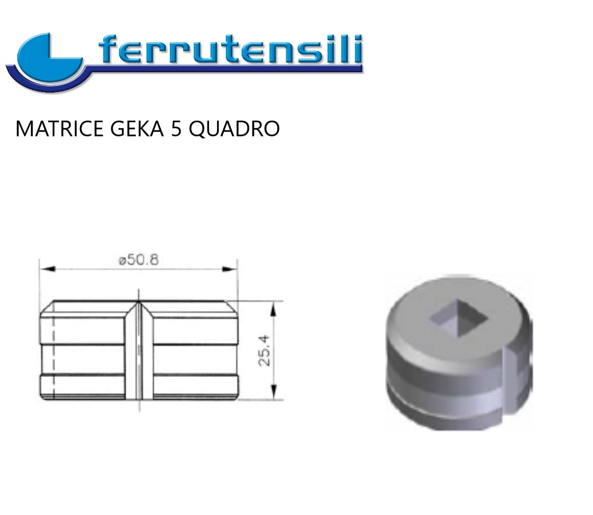 Matrice per Punzonatrice GEKA Serie 5 QUADRO Riferimento 0° Diagonale massima mm. 31 Gioco Standard mm. 1 Gioco consigliato acciaio Spessori da 2÷4 mm. Gioco mm. 0,5 Spessori da 4÷8 mm. Gioco mm. 1 Spessori da 8÷12 mm. Gioco mm. 1,5 Spessori da 12÷15 mm. Gioco mm. 2 Le misure delle matrici comprendono il gioco Verificare la Disponibilità tramite apposita funzione Verifica Disponibilità Per le misure NON INDICATE O MANCANTI DI QUOTAZIONE chiedere offerta e termine di consegna Prodotti disponibili in magazzino spedizione in 1 giorno lavorativo max dalla data ordine In caso di disponibilità 0 per questo articolo la spedizione è prevista in 6/7 gg. lavorativi salvo imprevist