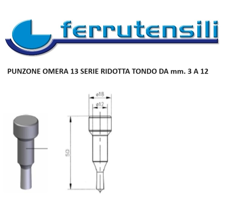 Punzone per Punzonatrice OMERA 13 Serie Ridotta Tondo Dimensione diam. da mm. 3 a mm.12 progressione mm. 0,5 Punzoni con diametro inferiore a mm. 3 disponibili a richiesta con sovraprezzo Selezionare misura nel menù a tendina su seleziona un elemento Qualora la misura sia sprovvista di prezzo si prega richiedere offerta Verificare la Disponibilità tramite apposita funzione Verifica Disponibilità In caso di disponibilità 0 per questo articolo la spedizione è prevista in 4/6 gg. lavorativi salvo imprevisti