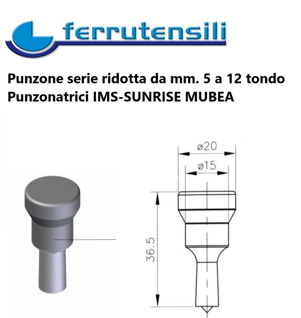 Punzone per Punzonatrice SUNRISE MUBEA IMS Serie Ridotta Punzone Tondo da mm. 3÷12 progressione mm. 0,5 Per utilizzare su Punzonatrice IMS adattatore cod. PCADAIMSPTR Per Utilizzare su Punzonatrice IMS adattatore cod. PCADASUNPTR Selezionare la misura tramite il menù a tendina Seleziona un elemento Verificare la Disponibilità tramite apposita funzione Verifica Disponibilità Per le misure NON INDICATE O MANCANTI DI QUOTAZIONE chiedere offerta e termine di consegna Prodotti disponibili in magazzino spedizione in 1 giorno lavorativo max dalla data ordine In caso di disponibilità 0 per questo articolo la spedizione è prevista in 6/7 gg. lavorativi salvo imprevisti