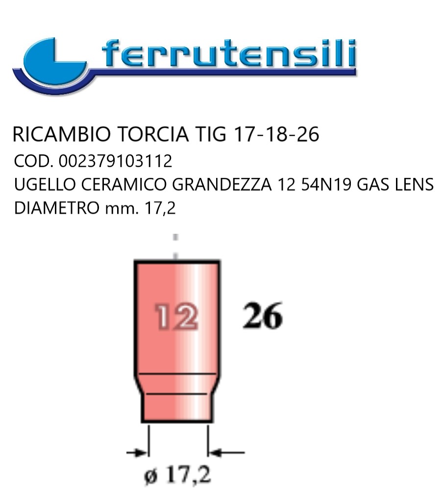 UGELLO ALLUMINIA GAS LENS GR.12-54N19