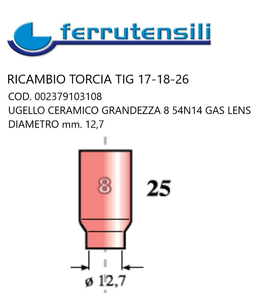 UGELLO ALLUMINIA GAS LENS GR.8-54N14